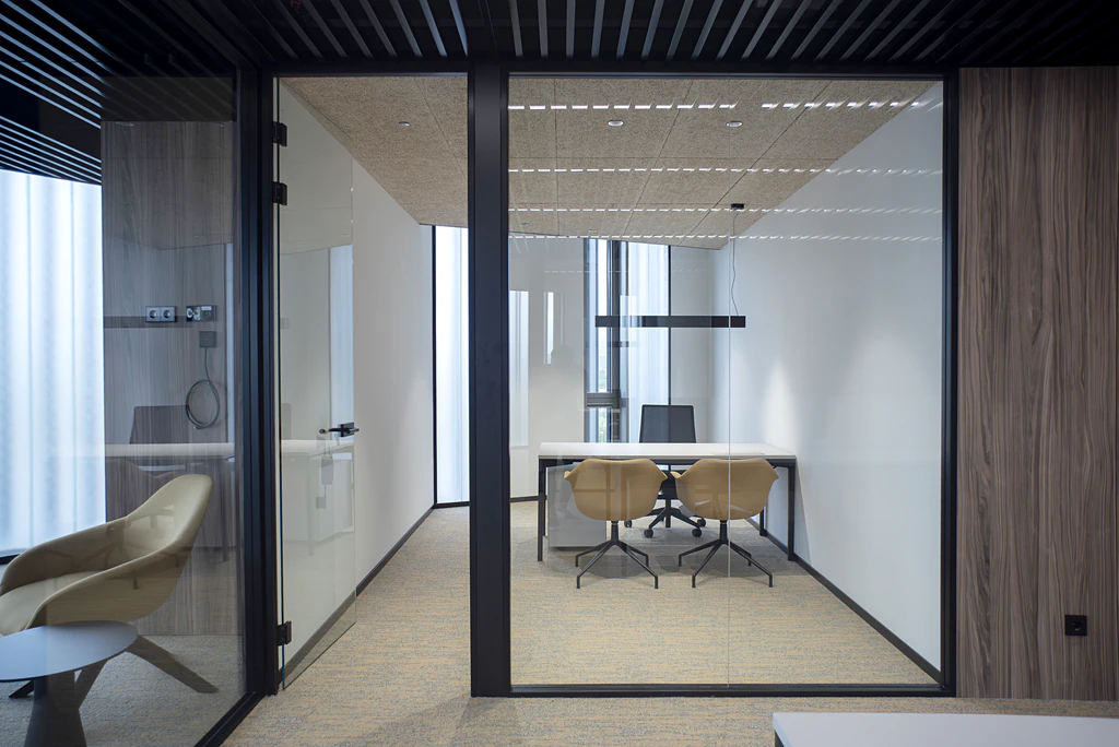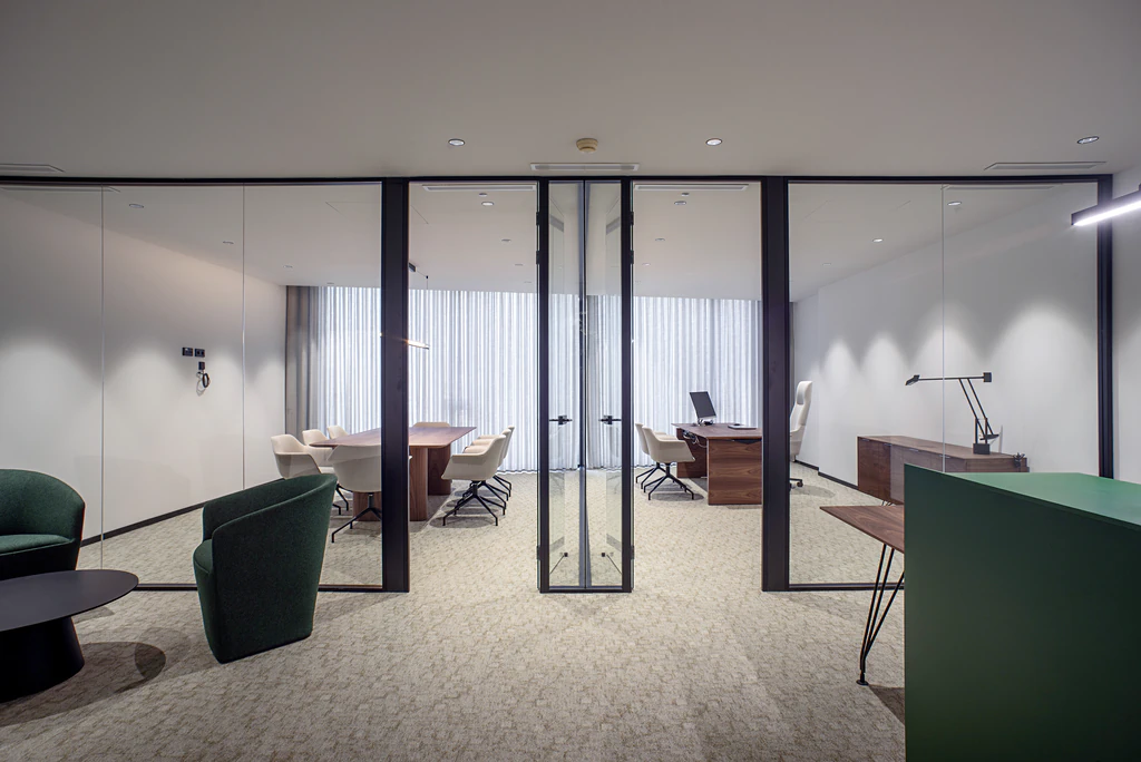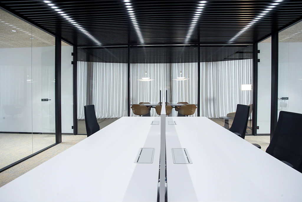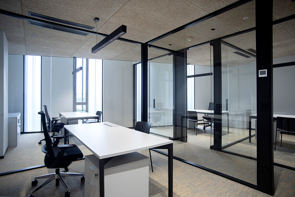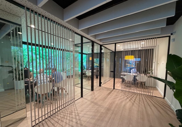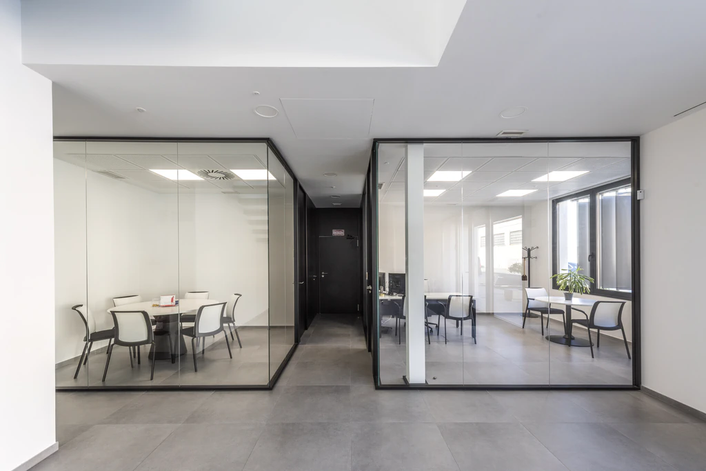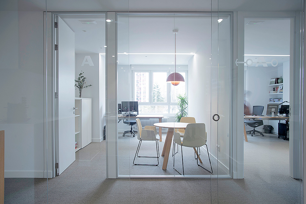 Nuestros sistemas de compartimentación modular pueden integrar los distintos tipos de soluciones en un mismo proyecto: doble vidrio, un vidrio simple y mampara ciega con modulacion vertical estandar u horizontal. Podemos aplicar una gran variedad de puertas: batientes, correderas y coplanares ó RAS tanto en ciegas como en vidrieras. También podemos aplicar Forrados de pared con los mismos acabados y soluciones que las mamparas y Tabiques Armario.